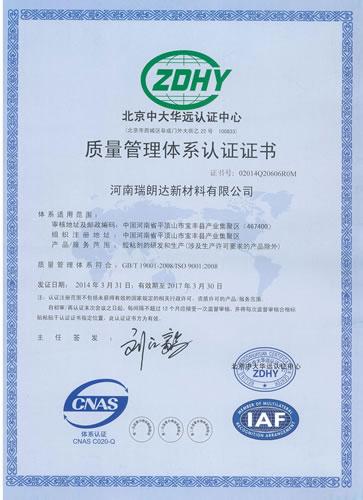 质量管理体系认证证书