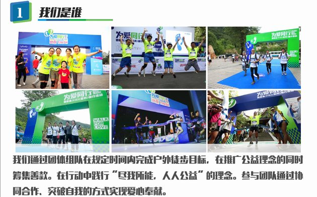 为爱同行·壹基金健行活动是一项将公益理念融入到户外行走的公益活动,首站深圳以“徒步+公益”的组织形式,每四名队员为一组,采用团体健行的连续(不间断)的活动方式,在16小时内依次抵达活动检查点并完成山野和城市的百里健行,并在规定时间内募集善款。