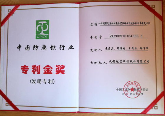 会上,中国工业防腐蚀技术协会会长潘小洁以《履行使命,勇于担为》为题作大会报告,秘书长李济克作“协会七届二次理事扩大会工作报告”。会议同期公布了“2015年度中国防腐蚀行业专利奖”,本次参评的申报项目经中国工业防腐蚀技术协会奖励评审委员会评审,最终有四项专利获得“2016年度中国工业防腐蚀协会专利奖”,其中金奖1项,优秀奖3项。值得一提的是,硅宝科技研发的“一种耐酸气腐蚀耐高温室温硫化胶硅橡胶及其制造方法”项目从众多参评项目中脱颖而出,一举斩获“发明专利金奖”。