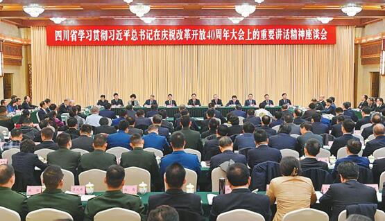座谈会上,中央表彰的改革开放杰出贡献个人刘永好、倪润峰,成都市委副书记、市长罗强等有关方面代表先后发言,交流学习习近平总书记重要讲话精神心得体会,从不同角度反映改革开放40年巴蜀大地沧桑巨变和各自领域取得的发展成就,表达立足岗位努力工作、持续推进改革开放的信心决心。