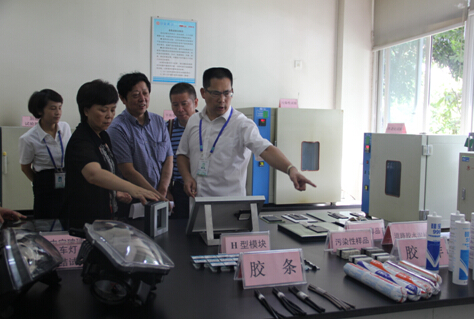 王有治总裁首先陪同调研组领导参观了硅宝企业技术中心,汇报了公司在技术创新、成果转化、人才培养、标准制定、知识产权等方面取得的成绩,同时介绍了公司先进的检测设备和完善的检验手段。在产品模块和组件展示区,调研组一行详细了解了硅宝产品在建筑幕墙、汽车制造、电子电器、轨道交通、机场道桥、电力防腐等领域的应用。