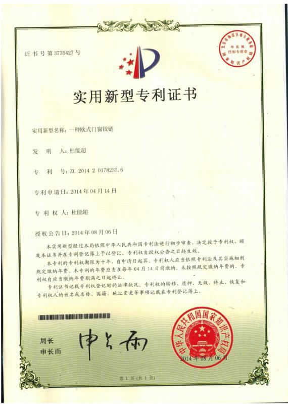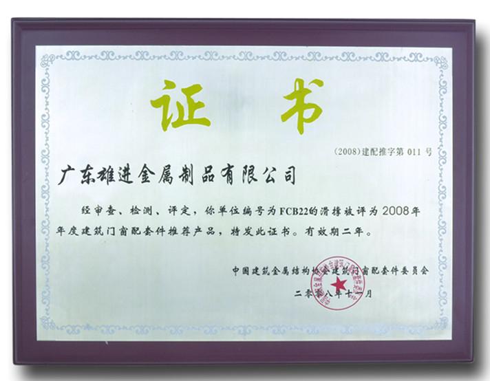 单位编号为FCB22的滑撑被评为2008年年度建筑门窗配套件推荐产品 |
