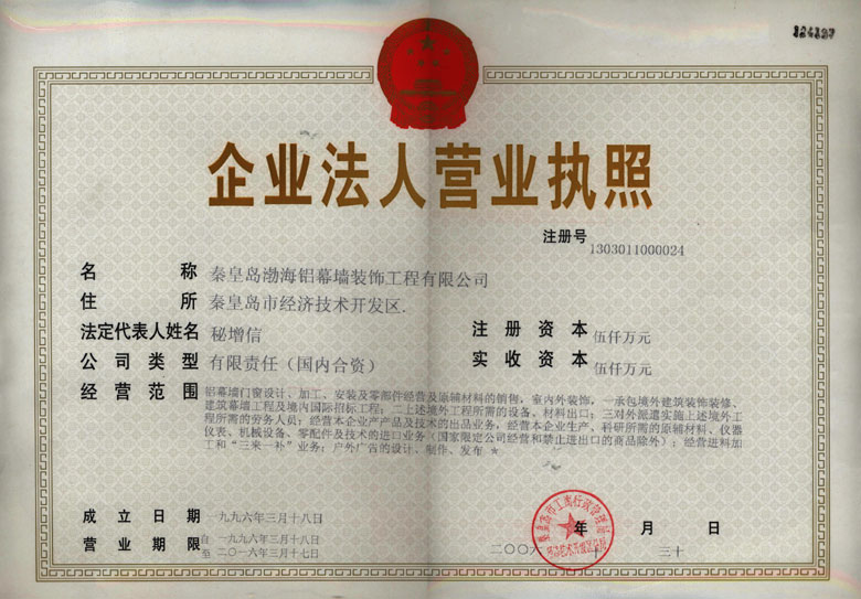 公司名称:秦皇岛渤海铝幕墙装饰工程有限公司