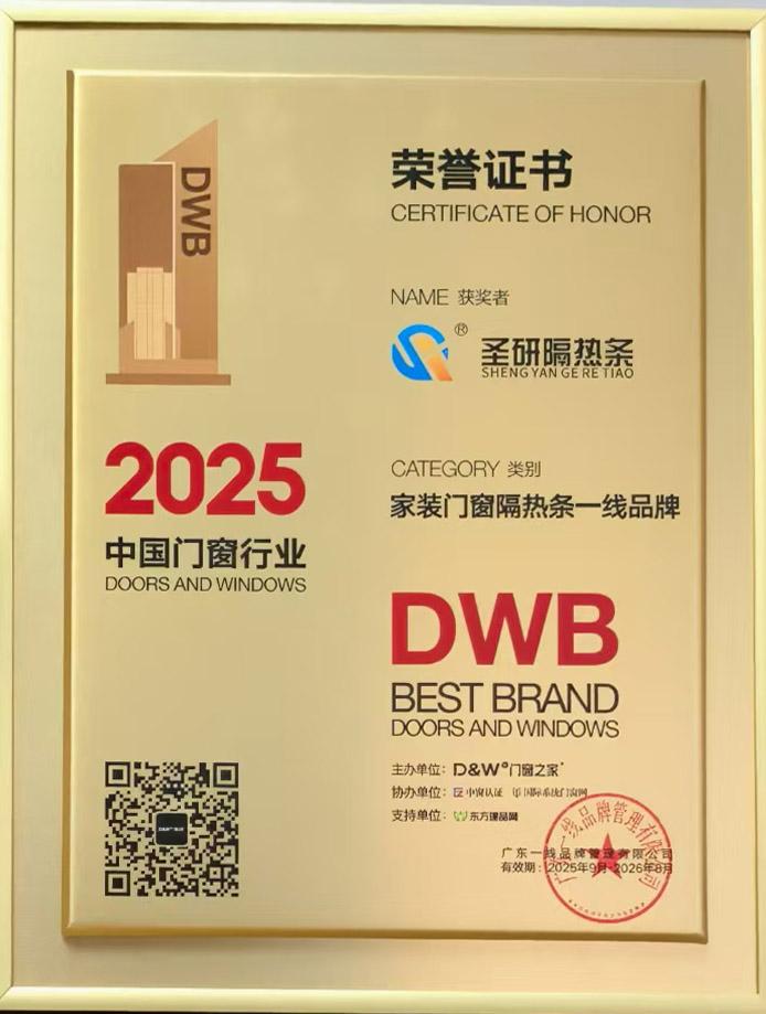 证书名称: 2025家装门窗隔热条一线品牌