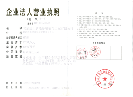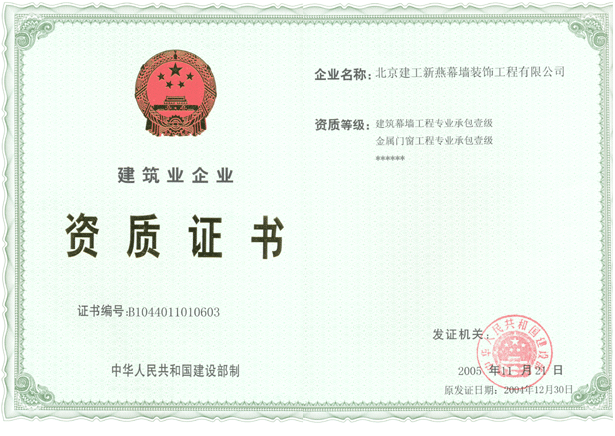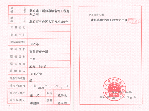 建筑幕墙生产许可证正本 |
