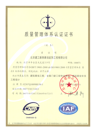质量管理体系认证证书副本 |