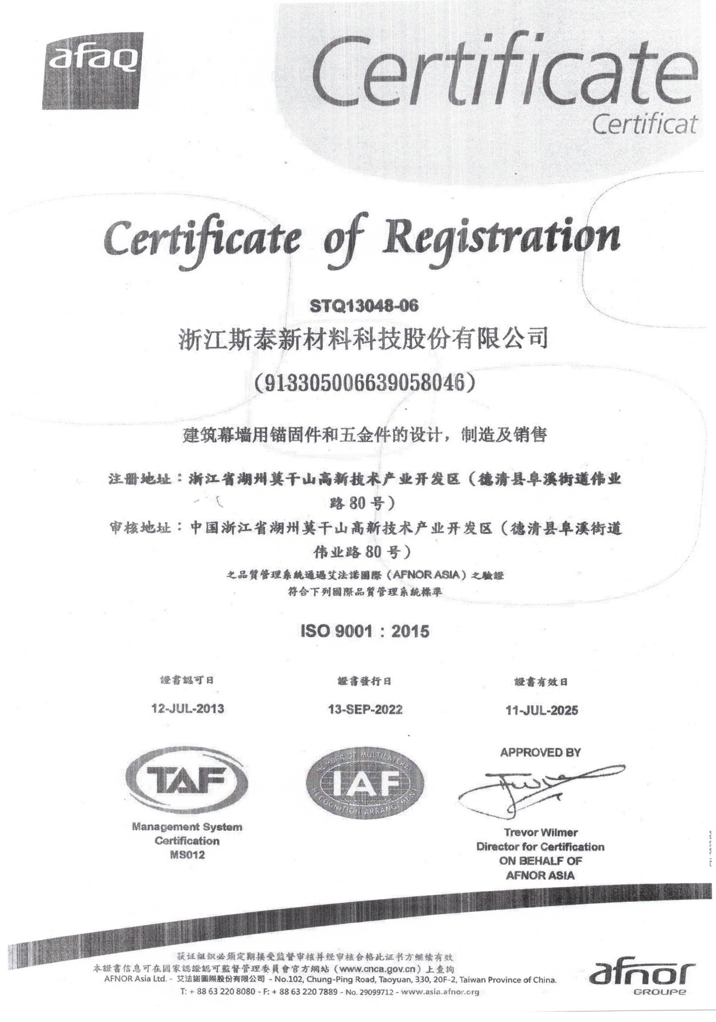 浙江斯泰新材料科技股份有限公司(锚栓)