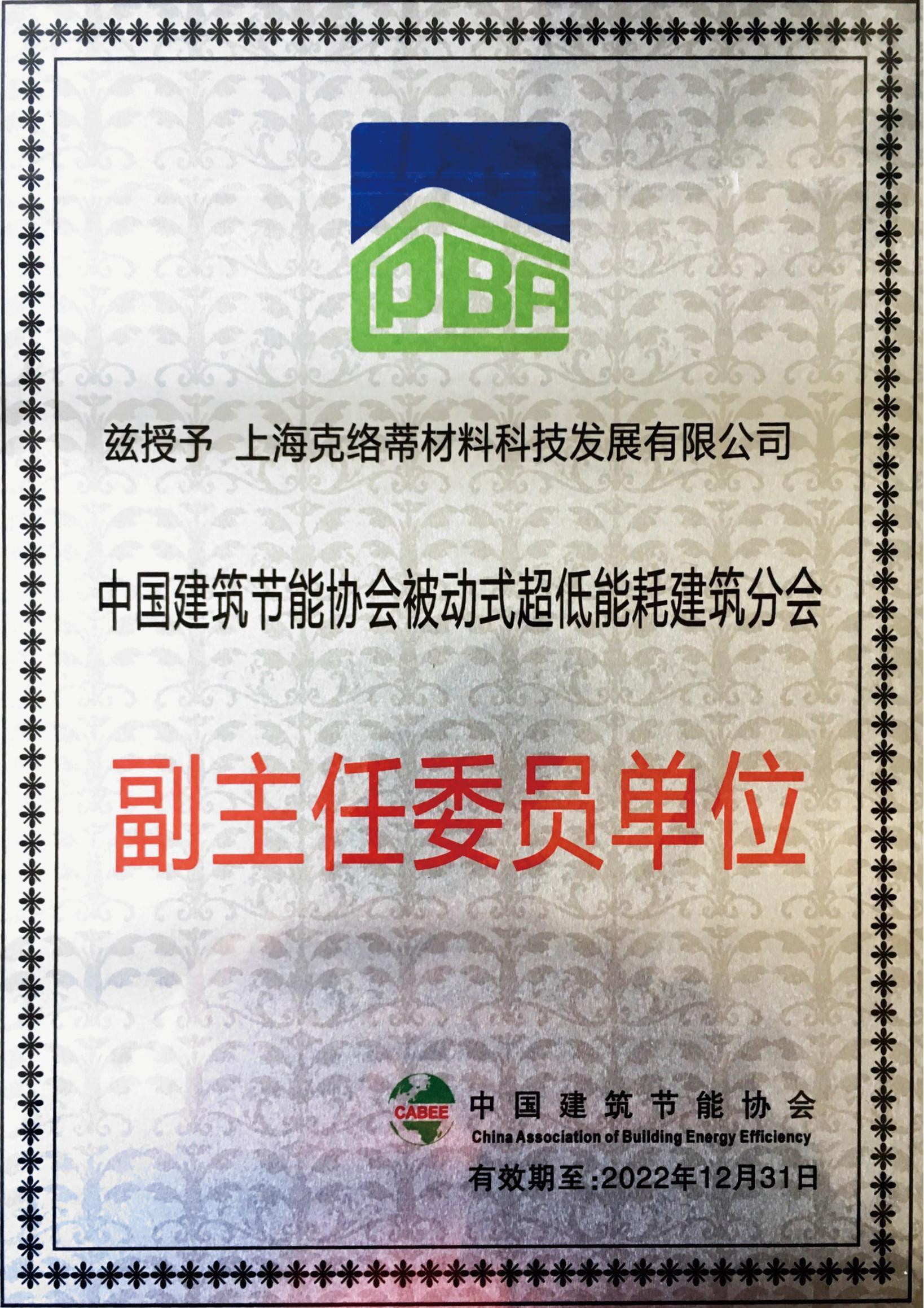 中国建筑节能协会被动式超低能耗建筑分会授予副主任委员单位 |