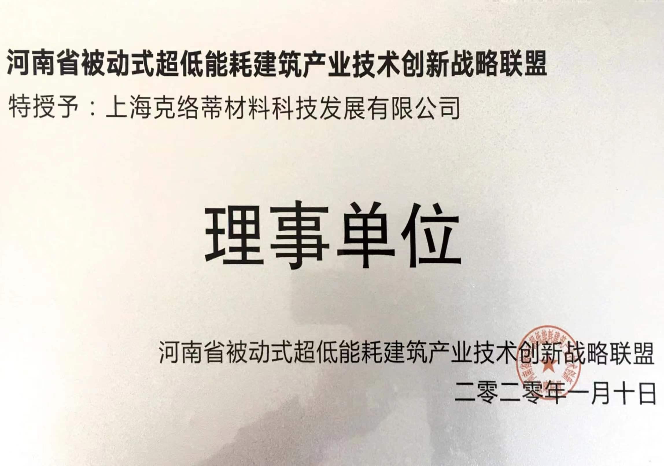 河南省被动式超低能耗建筑产业技术创新战略联盟授予理事单位 |