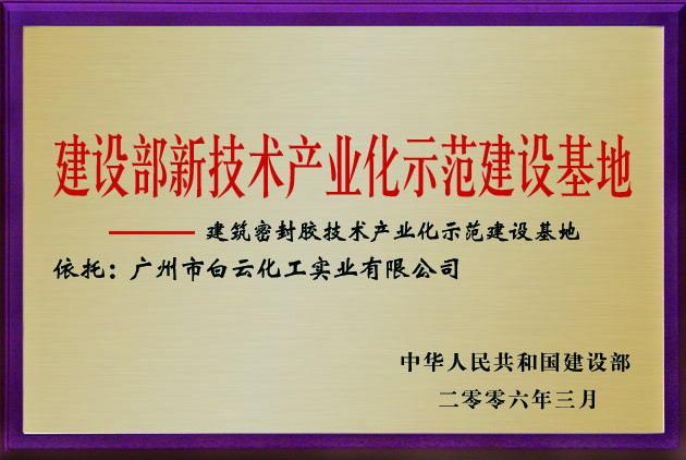 证书名称: 建设部密封胶产业化示范基地