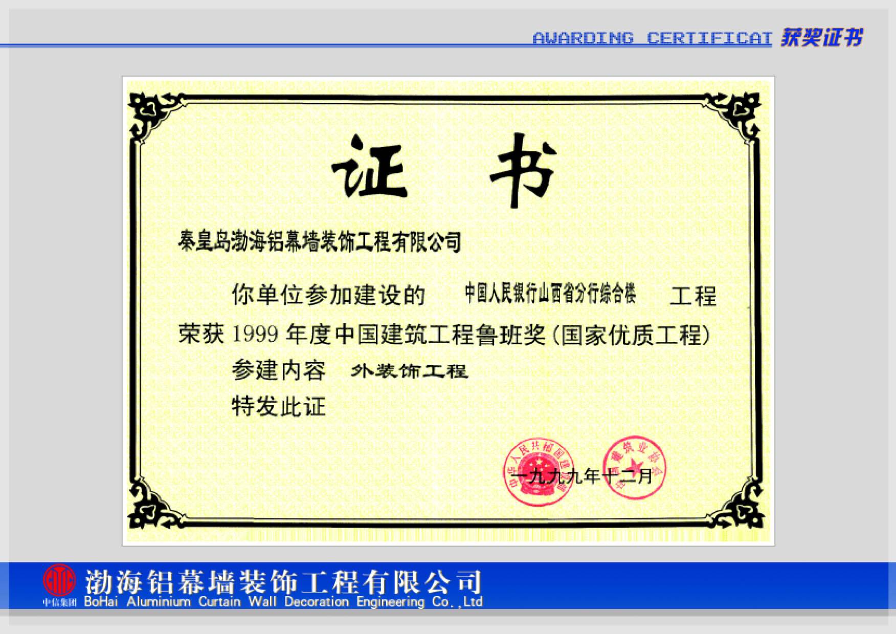 鲁班奖工程(中国人民银行山西省分行综合楼) |