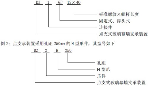 4.3.3 标记示例 例1 点支承装置采用标准螺纹M12 螺杆长度40mm 的固定式浮头式连接件其型号如下: