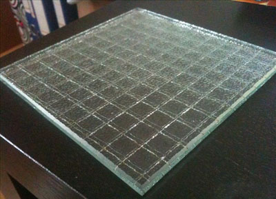 防火夹丝玻璃按结构分为夹丝玻璃和防火夹丝夹层玻璃。夹丝玻璃是用压延法生产的一种安全玻璃。当玻璃液通过压延辊之间成型时,将经过预热的金属丝或金属网压于玻璃板中,即制成夹丝玻璃。防火夹丝夹层玻璃是在复合防火玻璃生产过程中将金属网置于夹层中制成的。夹丝玻璃受到外力或在火灾中破裂时,玻璃碎片仍可固定在金属丝或网上而不脱落,可防止火焰穿透,起到阻止火灾蔓延的作用。夹丝玻璃最大的缺点是隔热性能很差,发生火灾十几分钟背火面温度高达400~500℃。